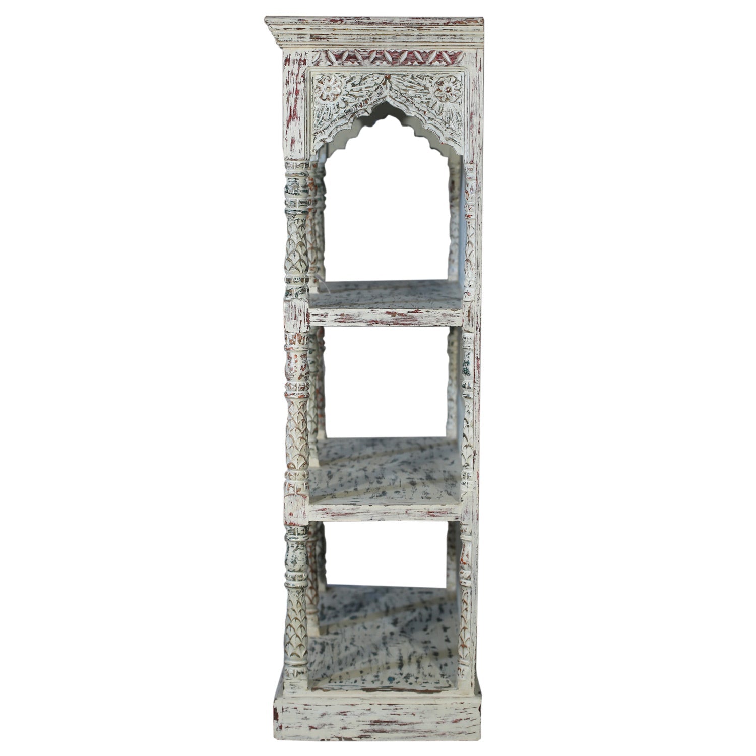 Farmhouse Style White Washed 3 Shelves Arched Solid Wood Display Unit