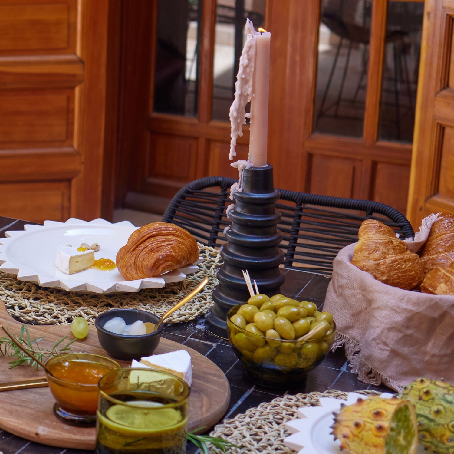 An Apartment F exclusive design. We worked alongside an artisan family in the Ourika Valley of Morocco to produce these handcrafted terra cotta candle holders. They perfectly double as bud vases for dried florals and stems.