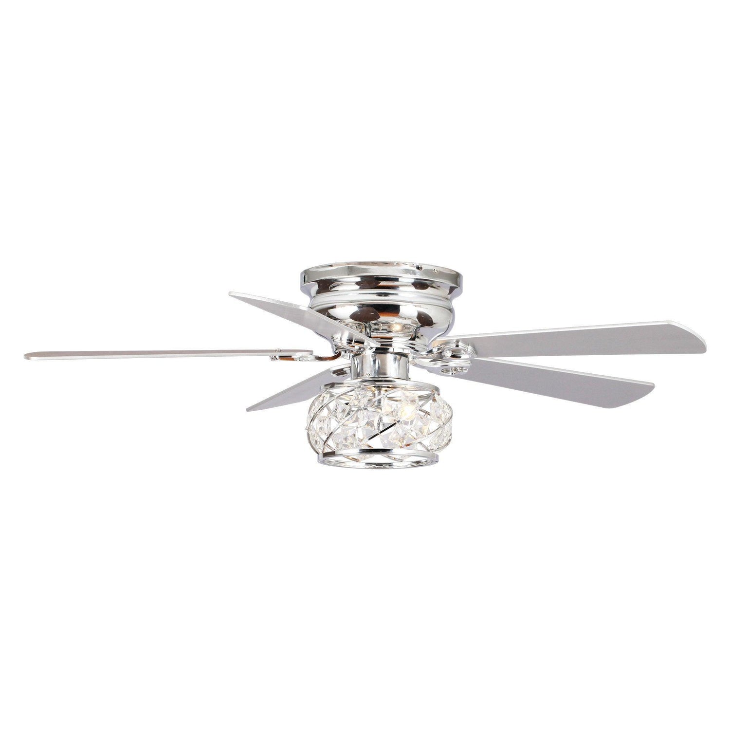 48" Modern Chrome Flush Mount Reversible Crystal Ceiling Fan with Lighting and Remote Control