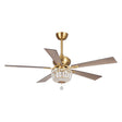 | 52” | Iron, Plywood, Crystal | D1"-L4"&L10" | 5*Plywood Blades | 2*25W, E12 base light bulb(not included) | AC motor | Remote control | 3 | Dry location |