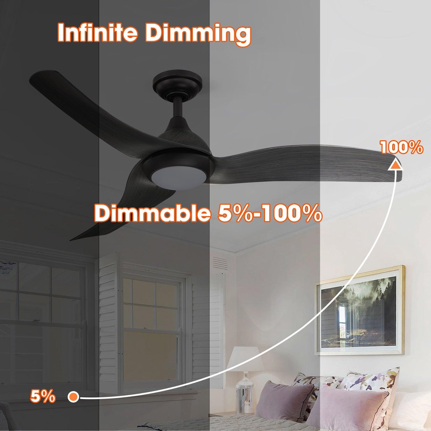 This 52" 3-blade LED ceiling fan not only provides the air circulation your home requires, but also comes equipped with a remote control, 6 fan speeds, and a reversible motor for year-round comfort. In warm weather, you can keep cool by rotating the fan counterclockwise. However, in cold weather, you can save money by reversing the direction of the ceiling fan to push warm air downward. Besides its functional features, this fan also boasts industrial/modern styling. With its Dark Bronze/White finish, it's perfect for your bedroom, living room, dining room, or hallway. Additionally, its sophisticated design makes it suitable for a variety of public areas. Therefore, this ceiling fan is not just practical but also aesthetically pleasing, making it a great addition to any space.