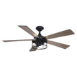 Enhance your living space with this stylish, industrial-style 52" indoor black ceiling fan. Besides its unique decorative cage light kit that enhances your space, it also features five two-color fan blades that perfectly match your room design. Included is a handheld remote that controls the six-speed motor, offering optimal convenience. The light kit, however, uses two E26 light bases and up to a 5w bulb (not included), therefore illuminating your space while also limiting energy consumption.