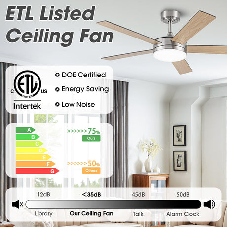 52" 4 Speed Wall Control Ceiling Fan with LED Lighting