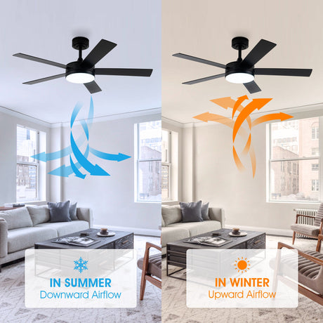 Vaczon 52 Inch 5 Blades DC Motor Modern Downrod Ceiling Fan with LED Light and Remote Control