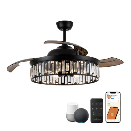 42" Mateo Modern Downrod Mount Crystal Ceiling Fan with Lighting and Remote Control