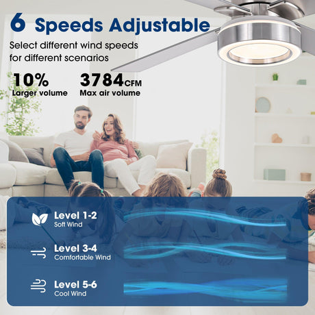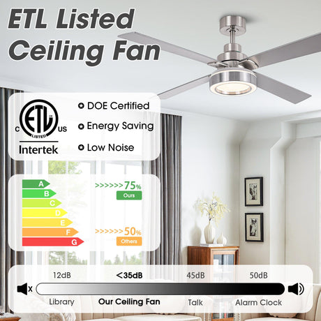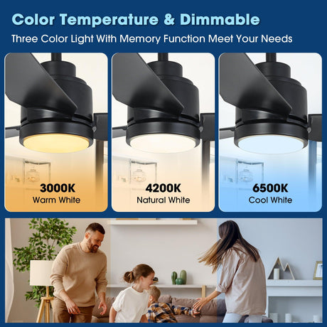 Vaczon 52" Down Mount Ceiling Fan with LED Light and Remote Control