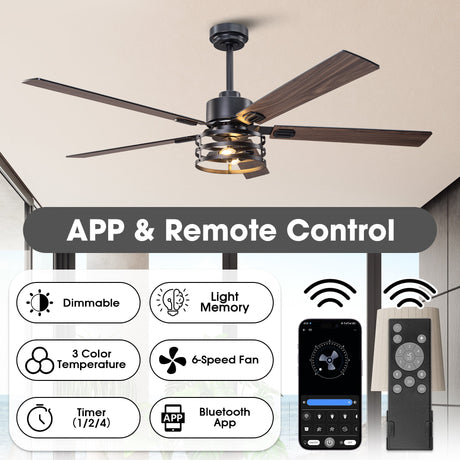 52" Bucholz Industrial Ceiling Fan with Dimmable LED Light