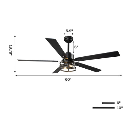 52" Industrial Reversible 5 Blade Led Ceiling Fan