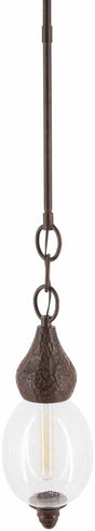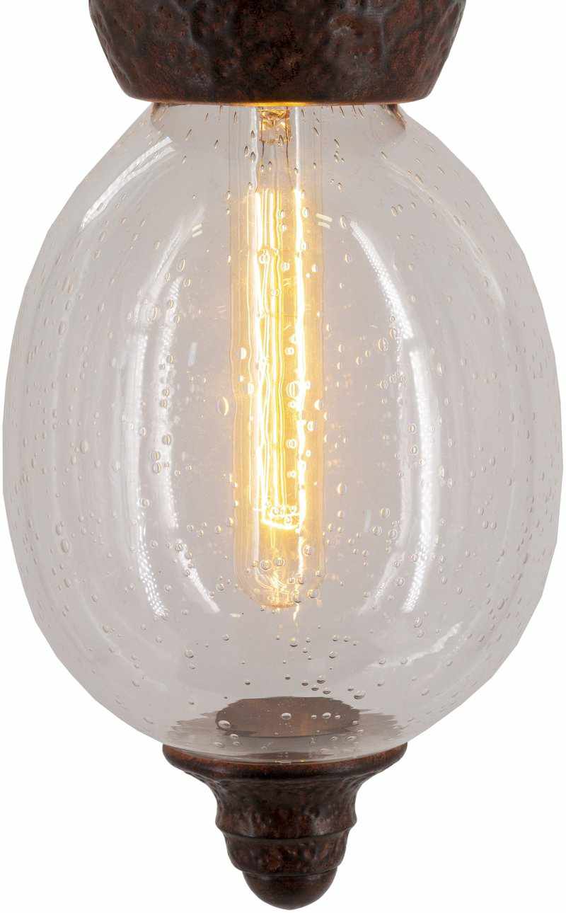 Elegant Design: Rust-finished metal and clear-seeded glass shade for a vintage-inspired aesthetic.