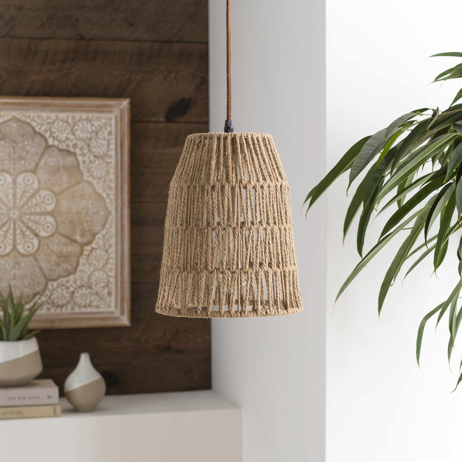 Premium Rattan Construction: Handwoven rattan shade in a natural finish for a durable yet lightweight design.