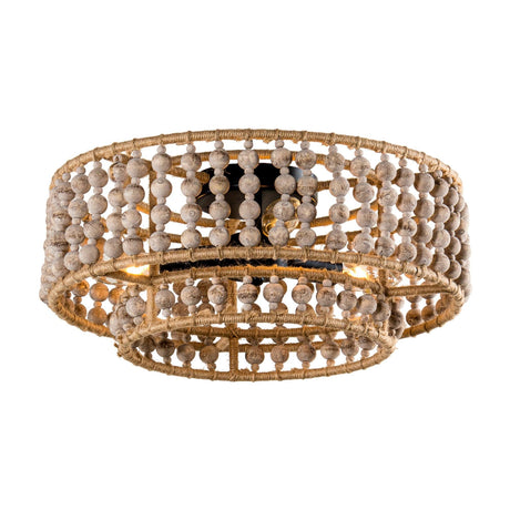 Farmhouse 3-Light Wood Beaded Flush Mount Ceiling Lights
