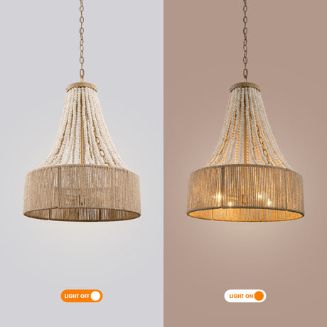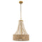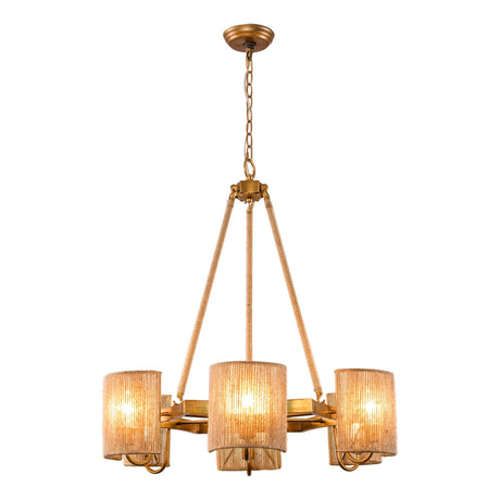 Bohemian Antique Gold 6-Light Drum Downrod Mount with Natural Rope Shade
