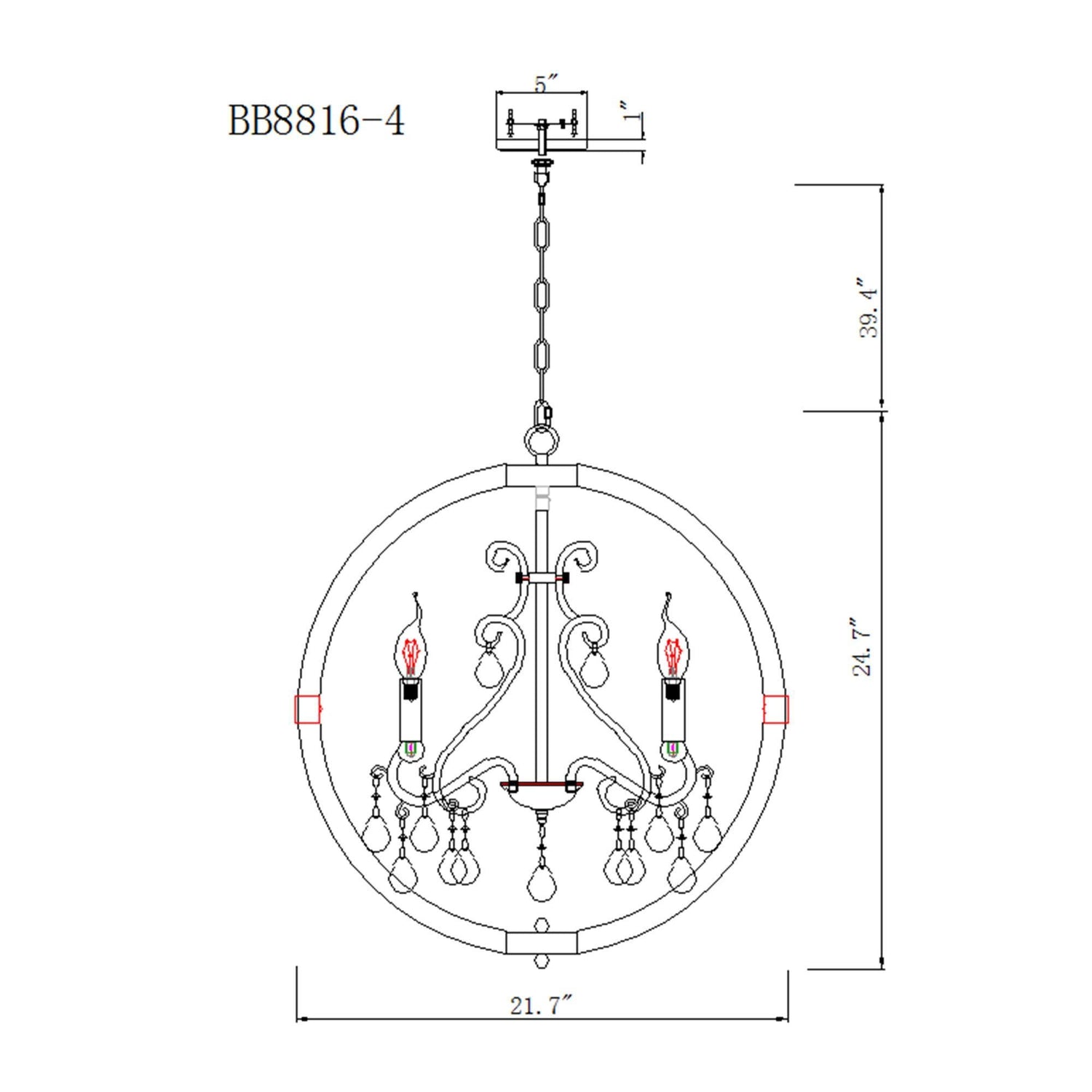 - Rod&Chain Length: 39.4"(adjustable)