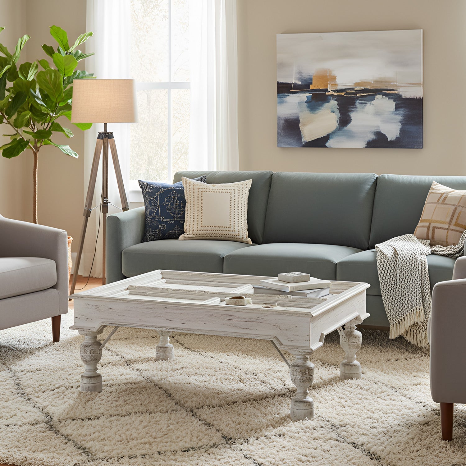 The ranch-styled square coffee table is a unique and an unusual piece of furniture to match the elegant look of your transitional and classic décor. Repurposed from an antique door, this sustainably sourced solid wood table offers a timeless ambiance of the 1900s to your interiors. The natural distressed white finish honors the time it captured in its sturdy frame while the old door top brings out the antique allure into the modern times.