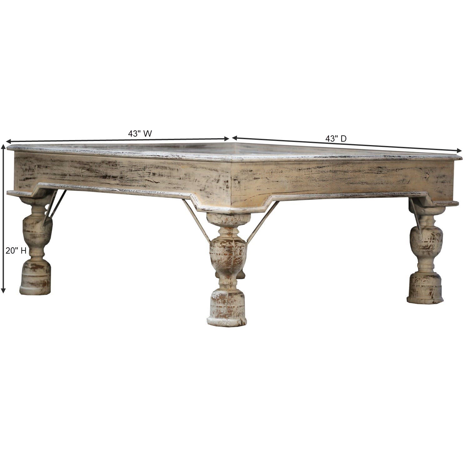 - 43 inches square coffee table with original accents