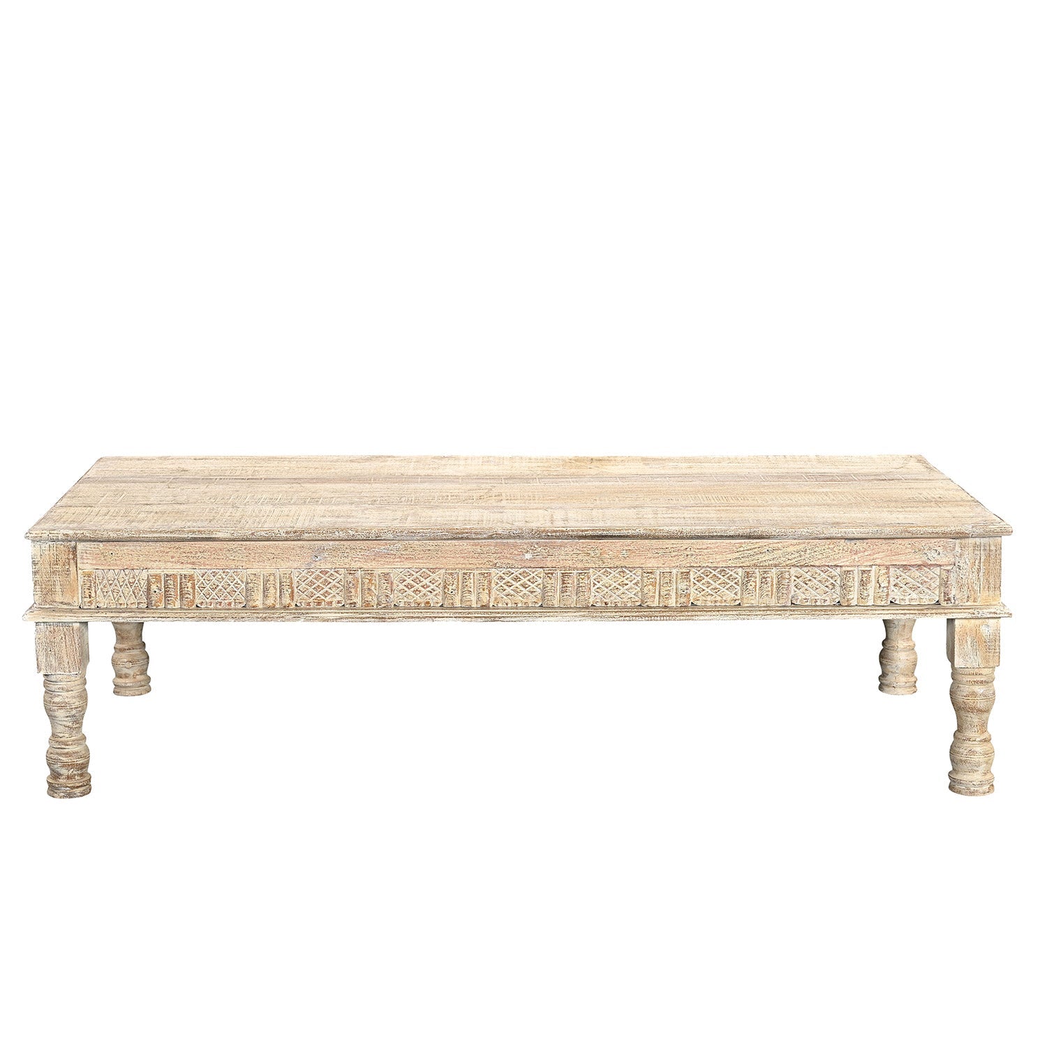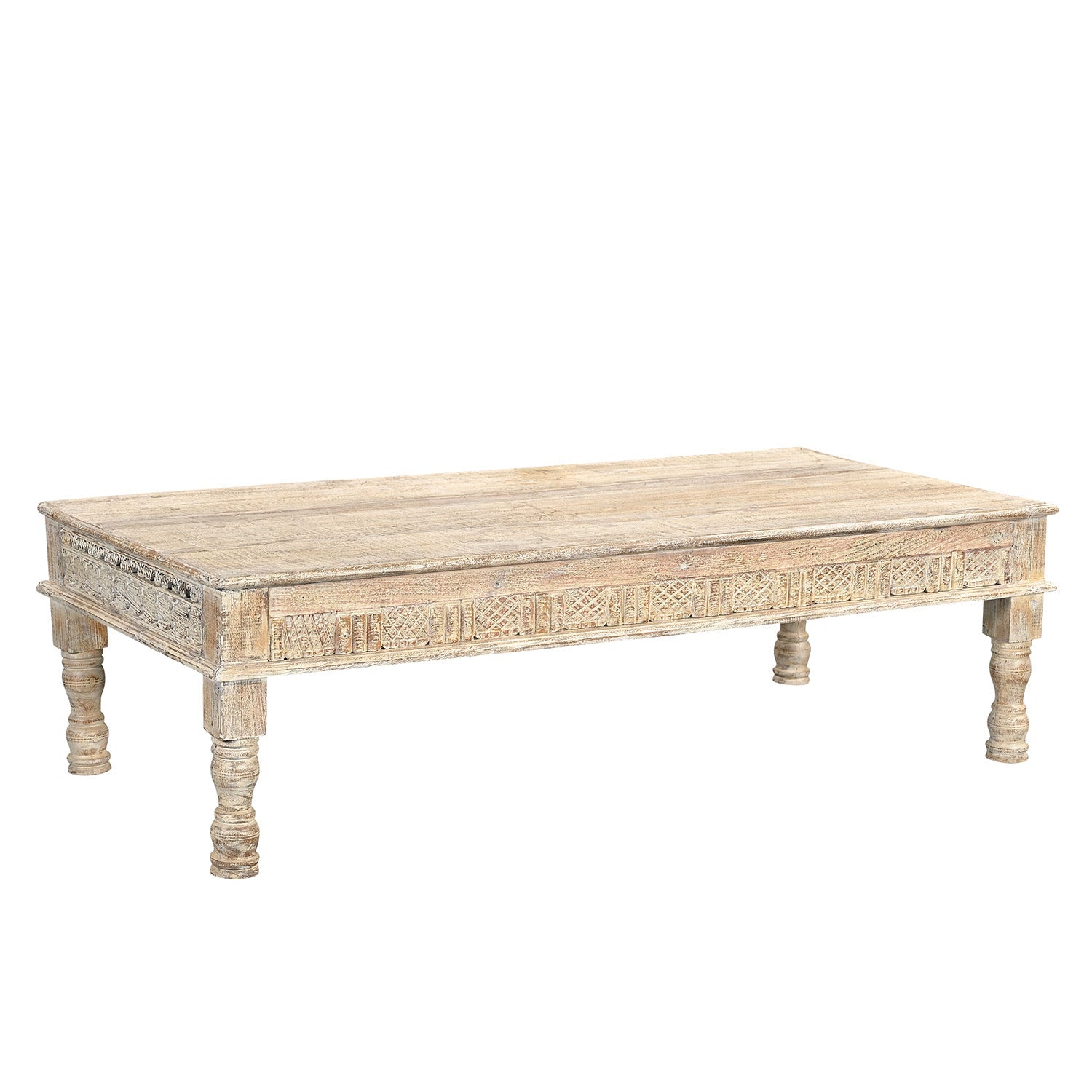 Farmhouse Style 71 in. Long Solid Wood Coffee Table In Distressed White Finish