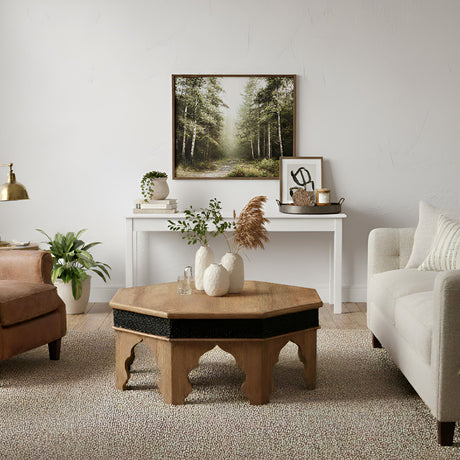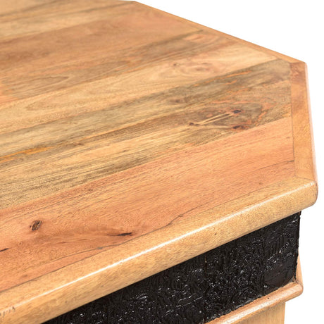 Mediterranean Style Solid Wood Hexagon Small Coffee Table With Carved Border