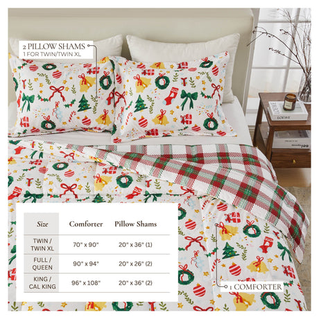 Reversible Christmas Comforter and Sham Set - Holiday / Lodge Odette Collection