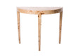 The Chloe Burl Demilune pairs a sleek silhouette with the warmth and natural character of mappa burl. With gently tapered legs and a curved, narrow profile, it’s well-suited for entryways, hallways, or other compact spaces where depth is limited but style is essential.