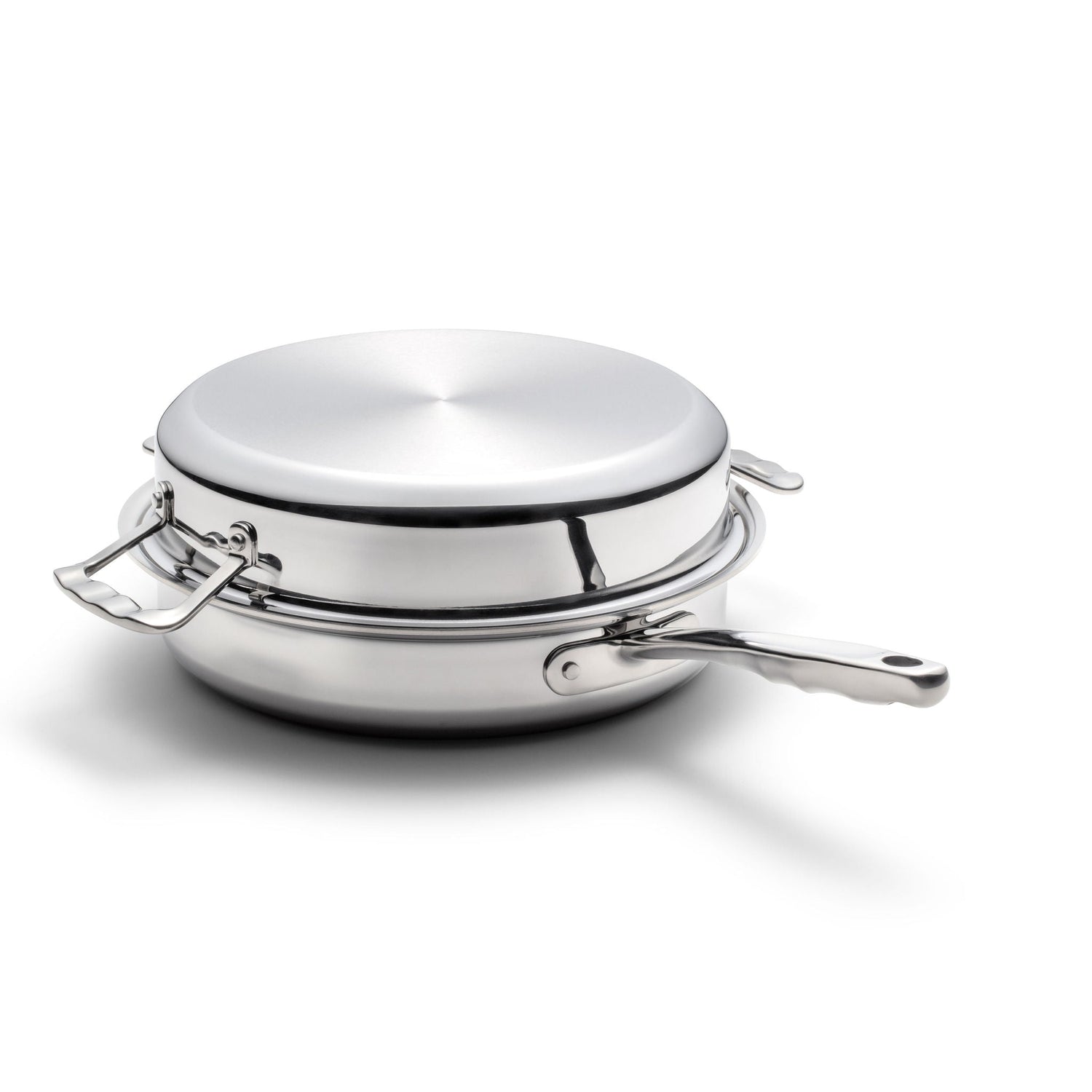 Experience one of our most useful and versatile pieces of cookware yet! To start, our 3-in-1 roasting pan takes oven roasting to new heights, perfect for keeping poultry and meats deliciously moist and tender. Next, move it to the stovetop and sauté vegetables to bring out their freshest flavors. Finally, flip it over and place atop a number of our pots to instantly add capacity to your cookware. The roasting pan fits perfectly atop our: Wok, 3.5 Quart Sauté Pan, 6 Quart Stock Pot, 6 Quart Slow Cooker Stock Pot and 8 Quart Stock Pot.