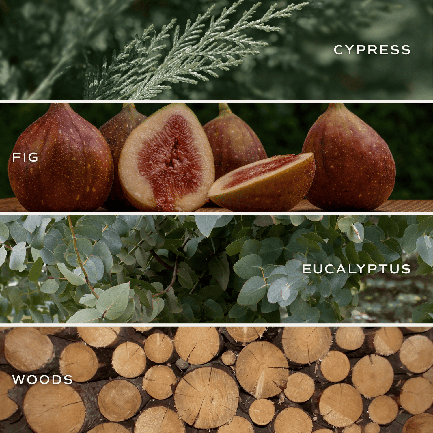 - Middle: Ripe Fig, Eucalyptus, Clove