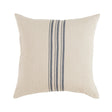 The Quinn Pillow is a decorative throw pillow that features a classic grain sack-inspired stripe design on both front and back. Crafted of 100% linen, the Quinn's blue-grey stripe on natural linen embraces a minimalist elegance, perfect pillow to mix, match and layer on your sofa or bed. Each pillowcase is handprinted by skilled artisans in India using a traditional wood block technique—designs are carved into individual blocks and hand-pressed to create a layered and detailed motif. Because each pillow is hand printed, expect natural variations in color and motif placement. Luxury Down or EcoSmart insert included.
