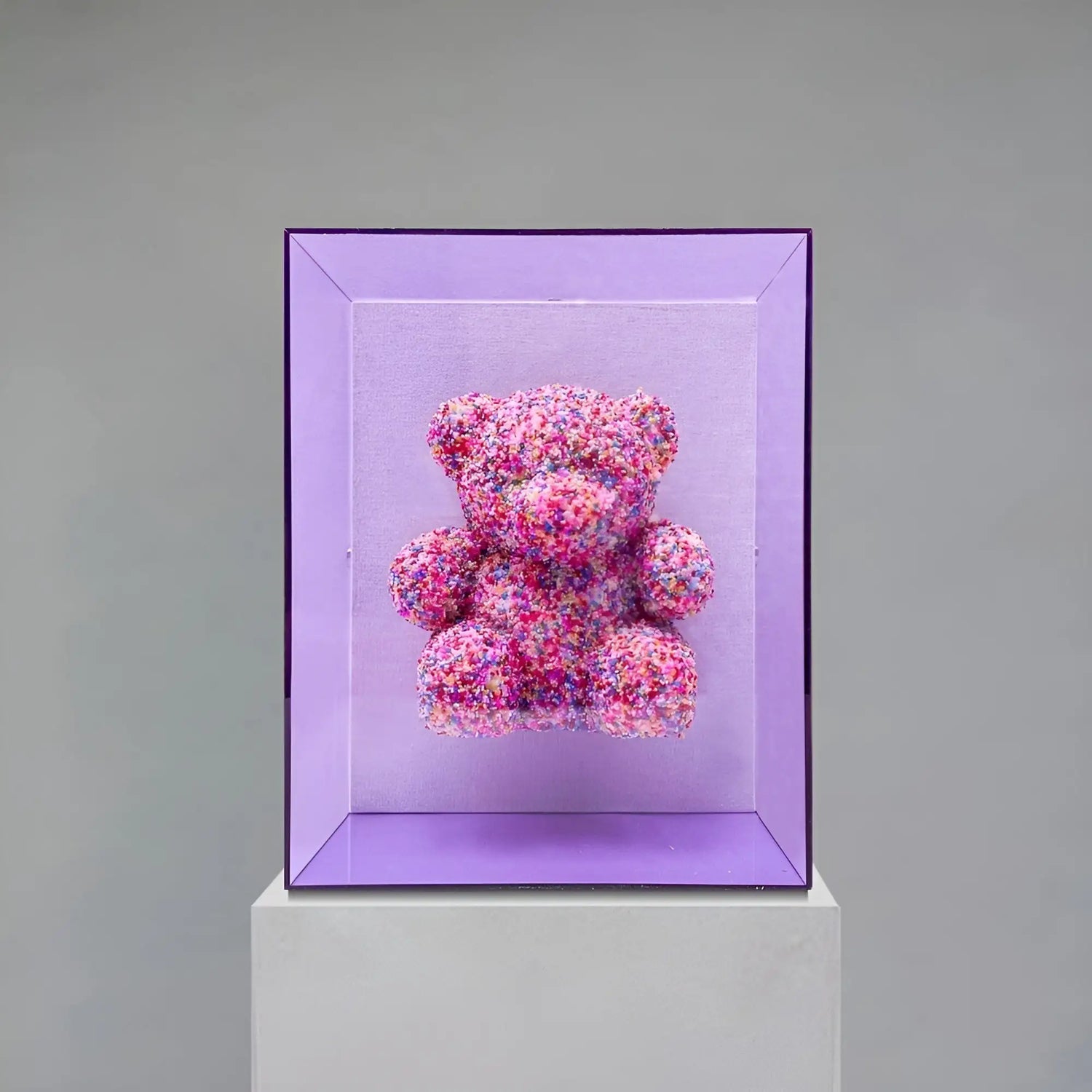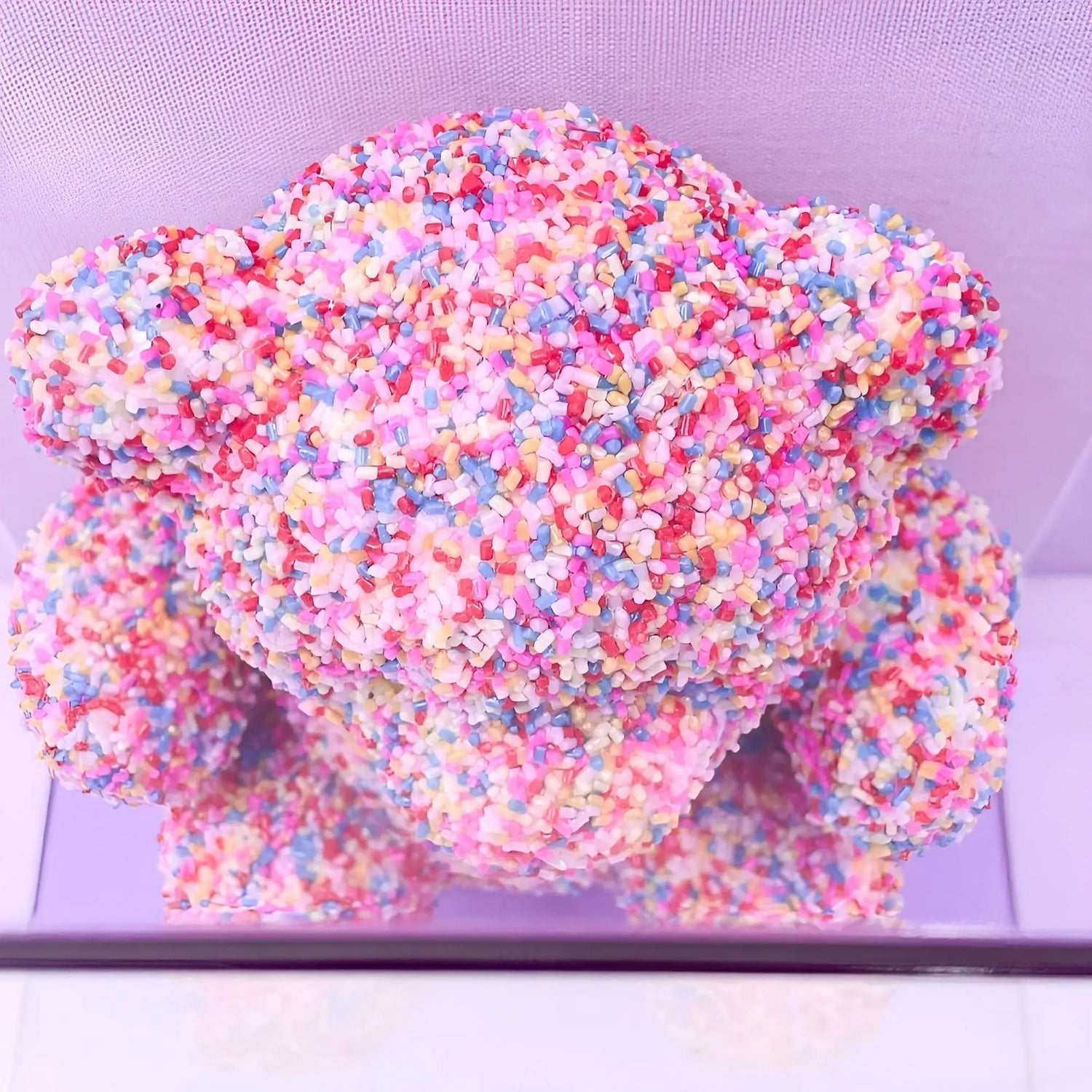 Meet the "Sprinkle Gummy Bear"—a playful fusion of whimsy and color, encased in a sleek acrylic case. This charming gummy bear, covered in vibrant sprinkles, adds a fun touch to any room. Available in six stunning colors, it's perfect for gifting or adding a unique, joyful element to your decor.