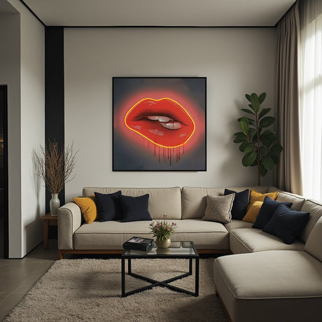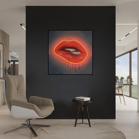 Sale price From $9.00 Regular price $12.00Unit price /Unavailable Red Lips LED Wall Art | Lip Biting Red LED Canvas with Paint Drip