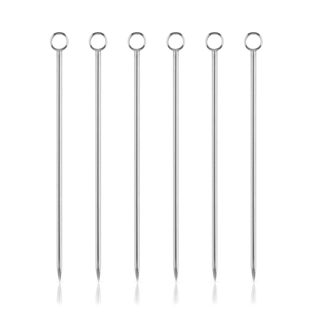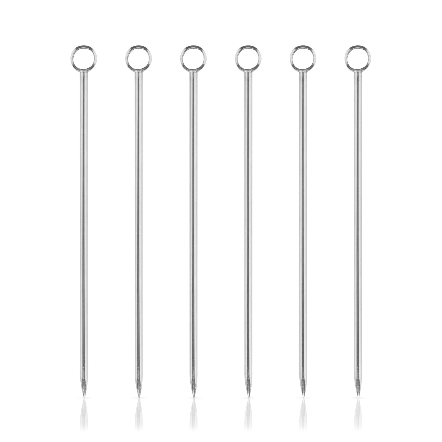 Pick your poison. Each cocktail pick in our classic set of six is finished with a small steel ring; ideal for propping an olive in your martini or a brandied cherry in your Manhattan.
