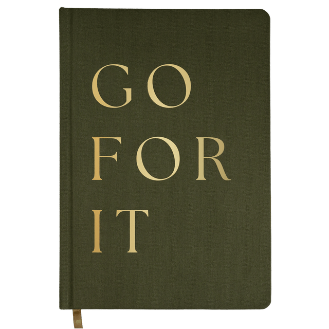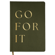 Write down all of your goals and dreams in our Go For It olive and gold fabric journal! With this chic, stylish, easy to write on notebook, there's no better place to jot down motivational notes, inspirational quotes, lists, and all of your great ideas! Perfect for work or school. This desk/office accessory makes a great gift. Pair it with our Go For It Devotional for the perfect gift!