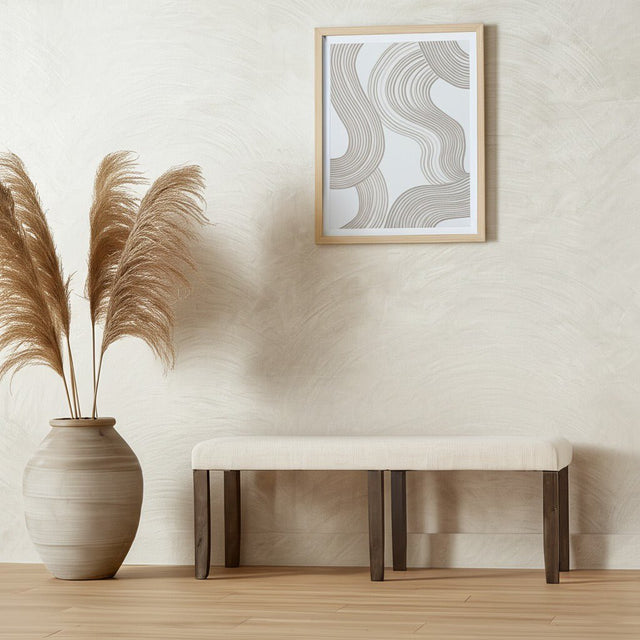 You only get one chance to make a first impression and the Brayden dining collection ensures winning results. Seat everyone for family dinners and casual Sunday brunches in Transitional style at the clean-lined rectangular table. Handcrafted from Acacia wood, the fixed top is accented with chamfered edges. The distinctive tapered legs, cross bar base, and rich Espresso finish complete the piece. Brayden accommodates up to 6 people, using the side chairs and/or bench, which are covered in a beautiful beige fabric. The upholstered foam-filled seat provides great comfort and the inset upholstered panel on the back of the chair is welt trimmed and can be seen from the front or back. Step up to Brayden and make your first impression count.