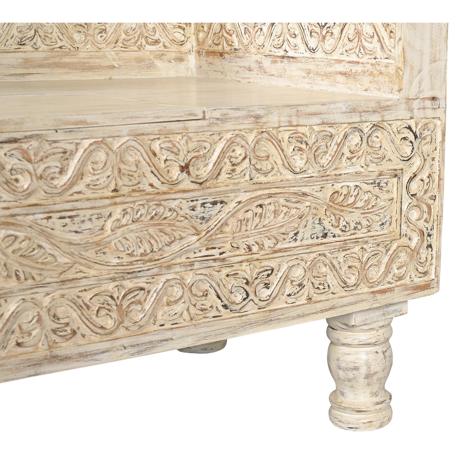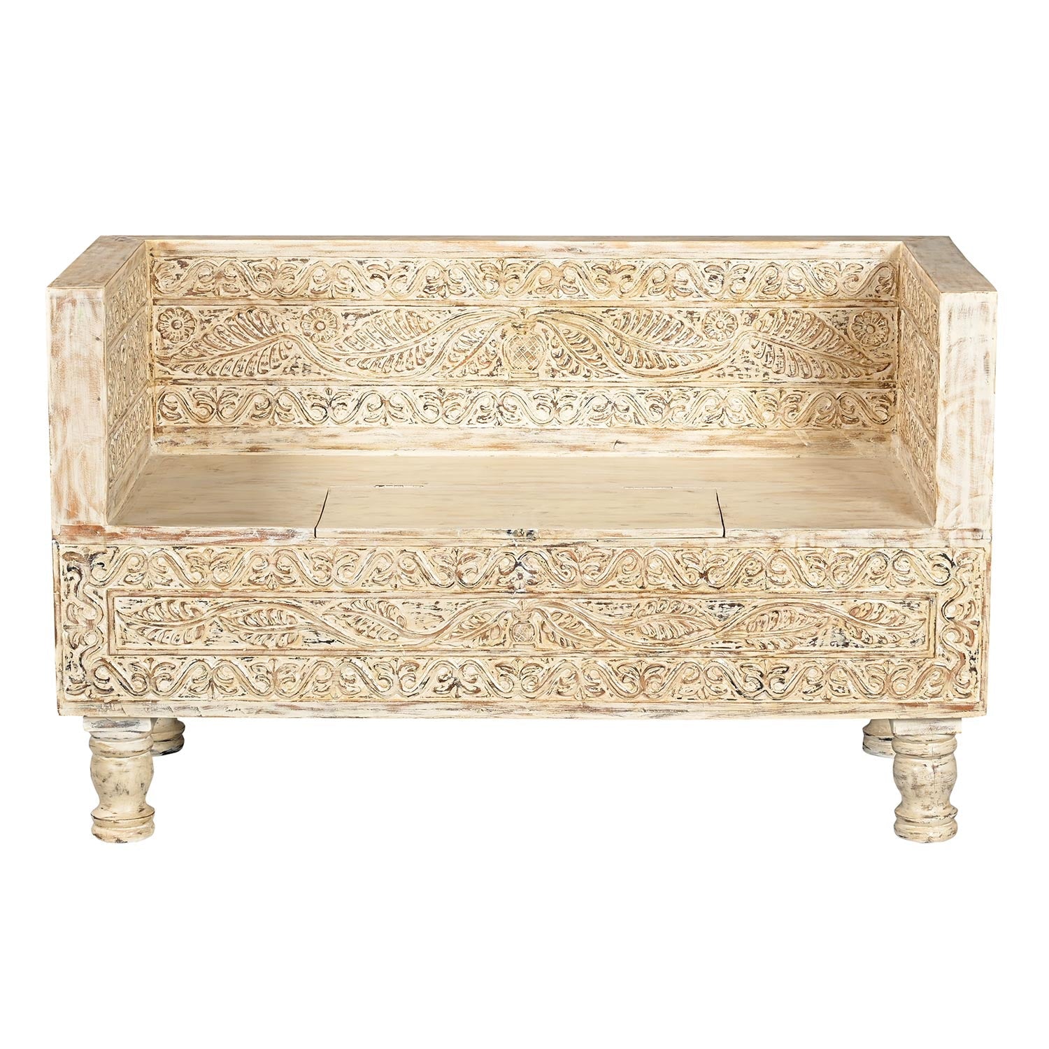 Note: This bench comes with a seat cushion upholstered with off-white cotton fabric.