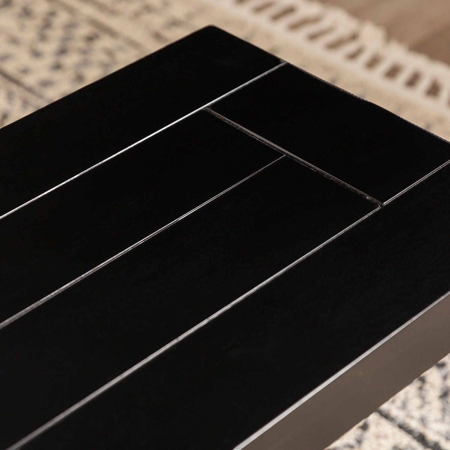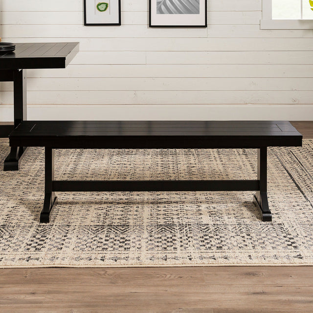 Crafted with a beautiful, solid wood veneer finish and warp-resistant MDF construction, our transitional style dining bench will provide additional seating for any occasion. Designed to be both a sturdy and stylish bench, ideal for your entryway or dining room. Mission-style accents are featured on both sides of the bench, with clean lines that create a classic, polished look and give a room a transitional feel. Pair with our matching dining chairs and table for a complete set in your kitchen or dining room.