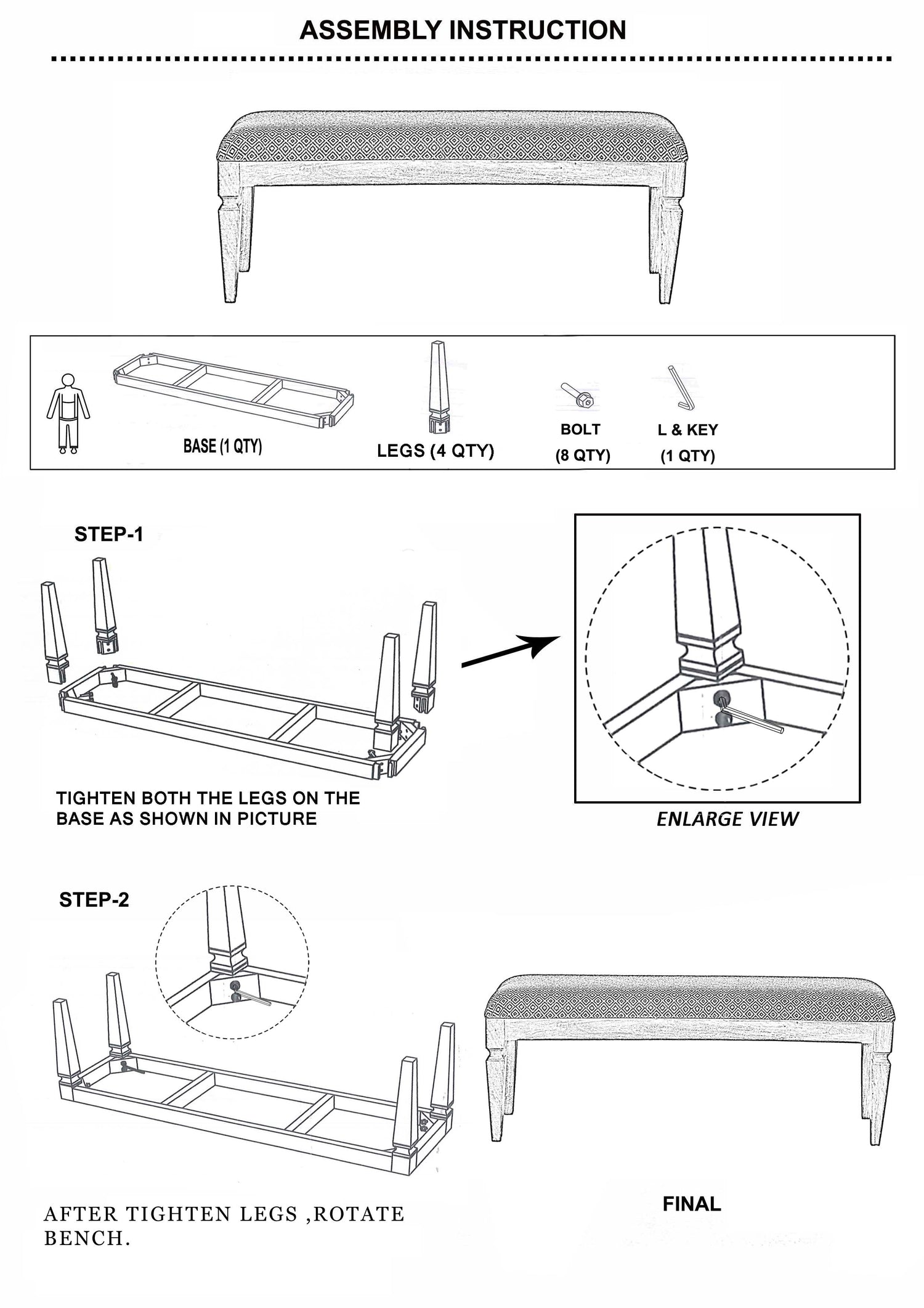 The craftsmanship reflects an attention to detail that ensures every piece is unique. Handmade in India, the bench adds a touch of global elegance to your home.