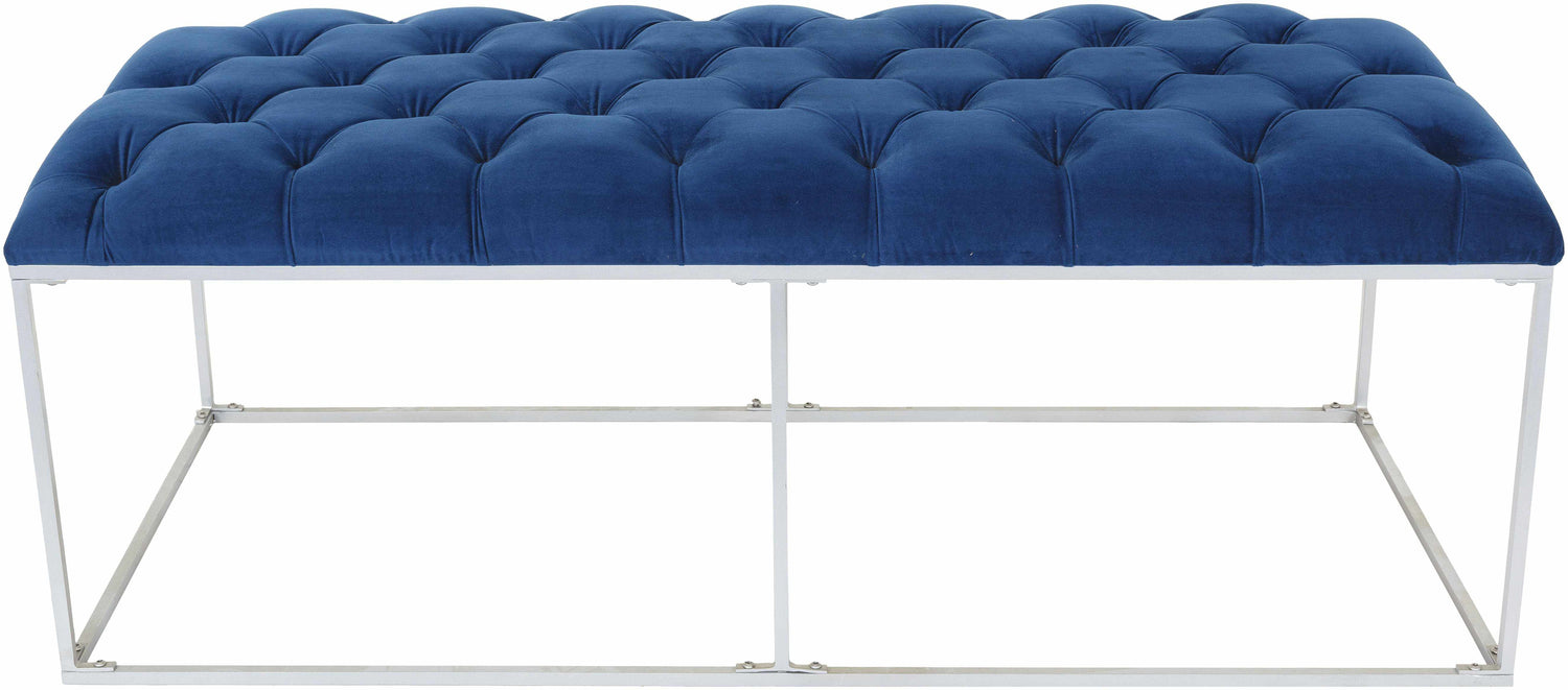 Transform your space with the bold sophistication of the Wienerwald Dark Blue Bench, a handcrafted piece that pairs plush comfort with contemporary style. Upholstered in rich dark blue velvet and supported by a sleek metal base, this bench makes an instant statement whether placed at the foot of your bed, along an entryway wall, or in the living room as a luxurious accent.