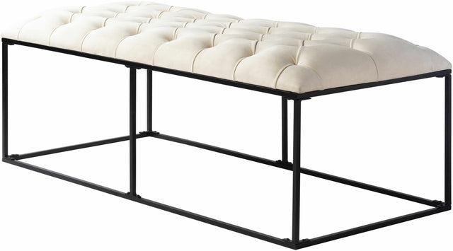 Introduce timeless luxury and minimalist charm into your space with the Wienerwald Ivory Bench. Handcrafted in India with exquisite attention to detail, this bench features a rich velvet upholstery in a soft ivory tone that radiates sophistication. Its clean lines, deep tufted cushioning, and sleek metal frame come together in perfect harmony to create a piece that is as stylish as it is functional.
