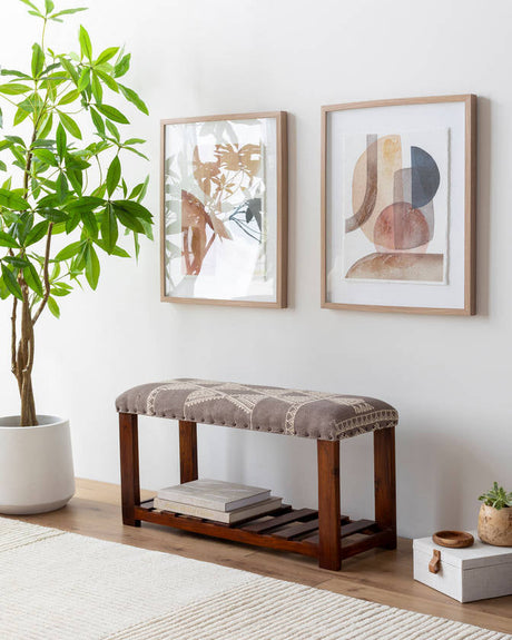 Solid Wood Entryway Bench with 1 Bin and 2 Shoe Divider
