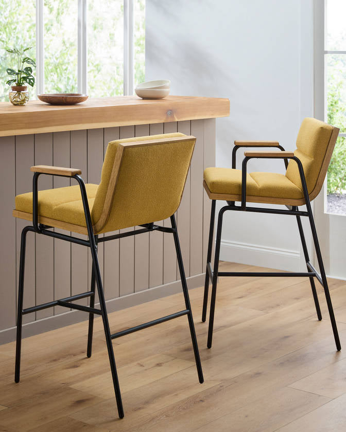 Step into a world of rustic charm with our Marinna stool, an absolute must-have for lovers of industrial design. Made in Vietnam, this stylish stool features a hard-wearing metal base and is generously filled with 100% polyurethane foam for ultimate comfort. The polyester upholstery lends a ruggedly sophisticated touch, perfectly encapsulating the raw and edgy appeal of industrial decor. Plus, maintaining this beautiful piece is as simple as spot cleaning with water only. Whether you're looking to enhance your kitchen counter or home bar area, the Marinna stool brings an element of effortless cool to any space.