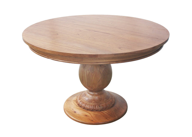 The Charlotte Pedestal Dining Table in Golden Oak offers a warmer, more traditional interpretation of our signature silhouette. Hand-carved from solid wood and finished in a rich golden oak stain, this table evokes the feel of an antique heirloom—one that might be passed down through generations.