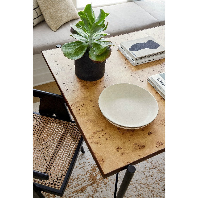 This table’s clean lines and balanced proportions make it incredibly versatile. Its warm brown top adds an inviting touch to a modern dining room, while the metal frame introduces an urban edge. Whether you pair it with upholstered chairs for a refined look or with wooden seating for a more rustic-meets-modern vibe, the Lilliana adapts effortlessly.