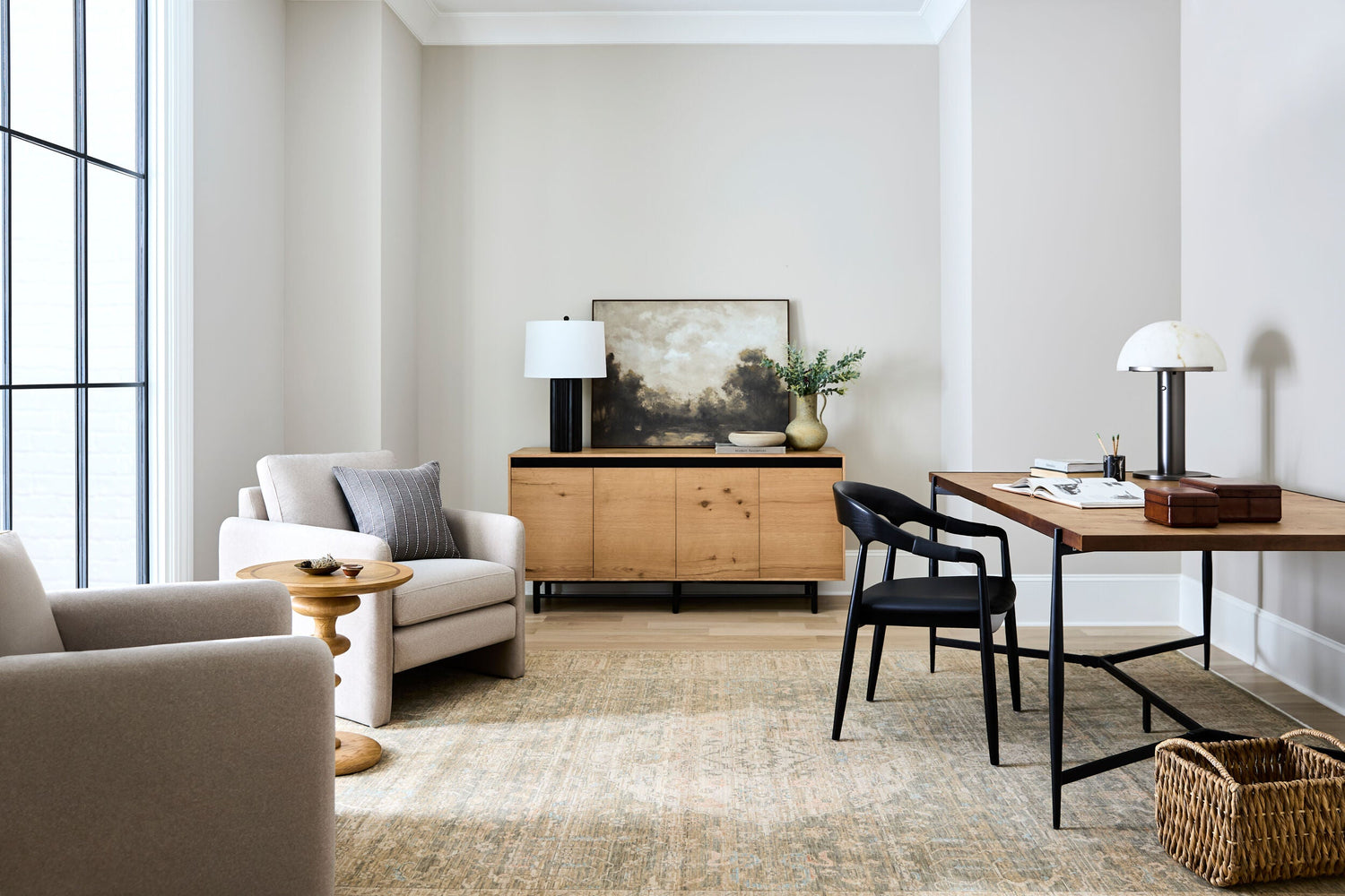 • Style: Modern minimalist design with organic texture.