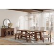 With a beautiful medium brown distressed salvaged wood finish, bring rustic elegance to your dining room with the Newberry Dining Table. A removable leaf lengthens the table from 88 inches to 103 inches, making ample room to seat eight. Using sustainable wood resources, this table is constructed with Acacia wood and built with angled legs with an x-design at its base for both aesthetic appeal and stability. Designed with hosting in mind, this dining table is styled well with a combination of a bench and dining chairs.
