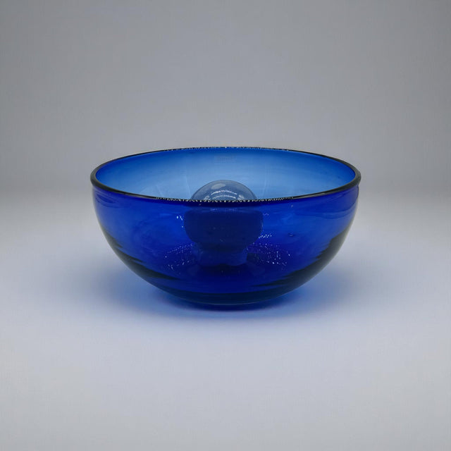 The Avalos bowl is made using recycled glass by artisans in Guadalajara, Mexico. Blue color. Food Safe.
