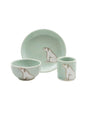 Arctic sea ice hunters roam the frozen tundra on these polar bear themed ceramic originally illustrated children's plate, bowl and cup.