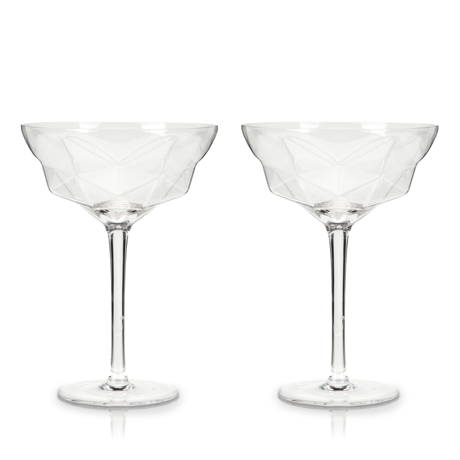 The tall stem and wide bowl of these martini glasses create a familiar silhouette, while light-refracting facets turn them into something completely fresh. Each angle rounds out toward the rim so you can enjoy the perfect sip.