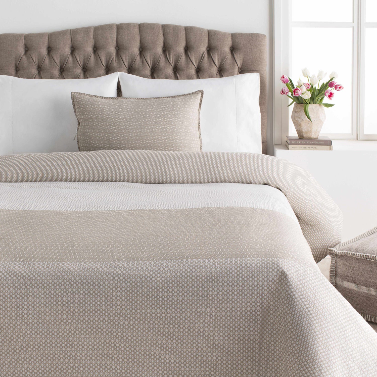 Blending cotton and flax, the Glina Beige Bedding offers a soft hand feel with a naturally textured finish that reflects its global, artisan-made roots. The fabric feels breathable and relaxed; just like your favorite linen shirt; making it perfect for cozy nights or breezy mornings.
