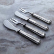 Our Silver Antique Maharaja Cheese Spreader & Fork 4 Pc. Set will serve your favorite cheese spreads and pickles with ease. Showcased in antique silver, this design has unique fluted handles and darkened bands which contrast beautifully with the mirror-polished utensils.