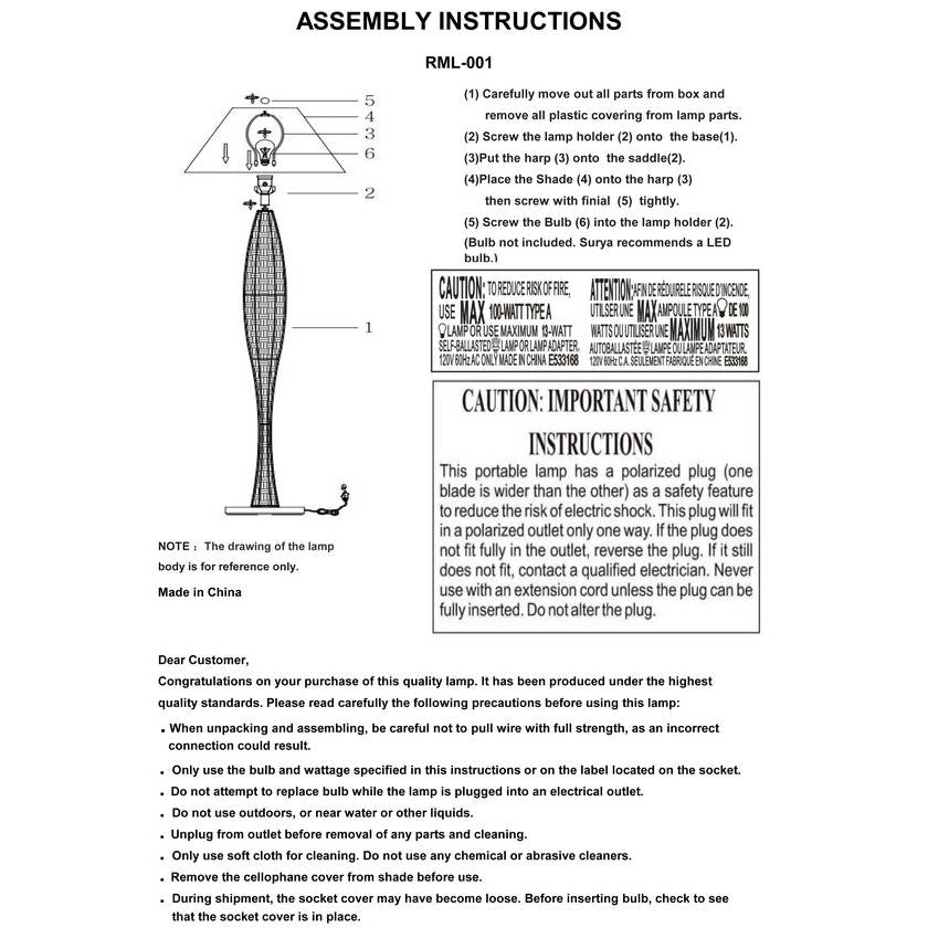 - Material: Body: Rattan; Base: Iron; Shade (Outside): Linen; Shade (Inside): Polystyrene; Finial: Iron