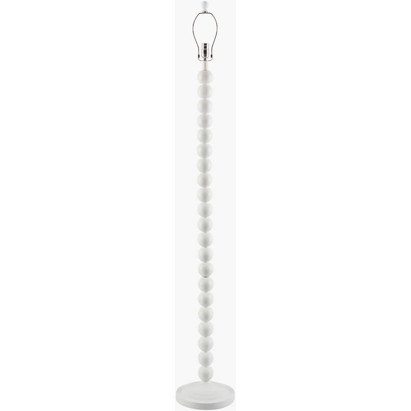 - Colors: Body: White; Base: White; Shade (Outside): Beige; Shade (Inside): White; Finial: White; Harp: Metallic - Brass; Cord: Translucent