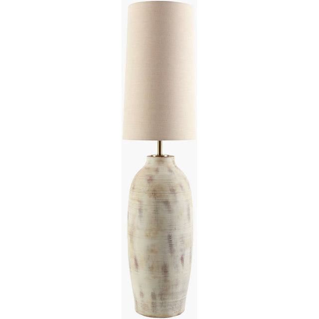 Illuminate your space with the timeless elegance of the Doenrade accent floor lamp. Standing at 55 inches tall, this traditional-style luminaire is a testament to classic design and thoughtful composition. The sturdy cement body, hand-painted to perfection, ensures stability and durability, while the linen shade both inside and out?casts a warm, inviting glow throughout any room. Its plastic interior within the shade enhances durability and light diffusion, making it perfect for creating cozy reading nooks or adding ambient lighting to your living areas. For maintaining its graceful appearance, simply wipe it clean with a dry cloth, steering clear of harsh cleaners to preserve its beautiful finish. Add a touch of sophistication and charm to your home with this exquisite Doenrade floor lamp.